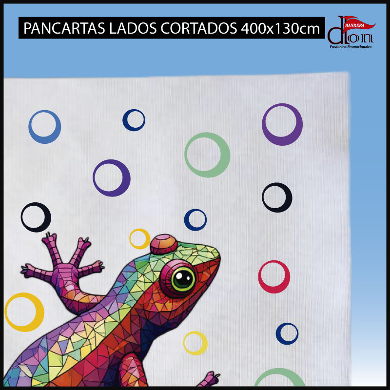 La pancarta con lados cortados de 400x130 cm es la elección perfecta para quienes necesitan un soporte de gran tamaño, económico y con máxima visibilidad. Fabricada en tejido resistente e impresa en digital a todo color, asegura un resultado llamativo y profesional sin necesidad de refuerzos adicionales. Es ideal para eventos masivos, ferias, campañas promocionales exteriores y decoración de espacios amplios.